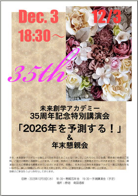 ◆「新年予測講演会」(毎年末開催):「2026年版」は2024年12月3日(水)予定。